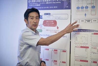 This exhibit’s theme was “Applying AI to Large-Scale Long-Term Asset Management – Analysis of Funds’ Behavior by Deep Learning toward Realizing Robust Manager Structure”. He introduced a joint project carried out with the Japanese Government Pension Investment Fund (GPIF) which uses AI to support the management of citizens’ pension assets, and discussed methods of making this sort of advanced management a reality through fundamental policies.