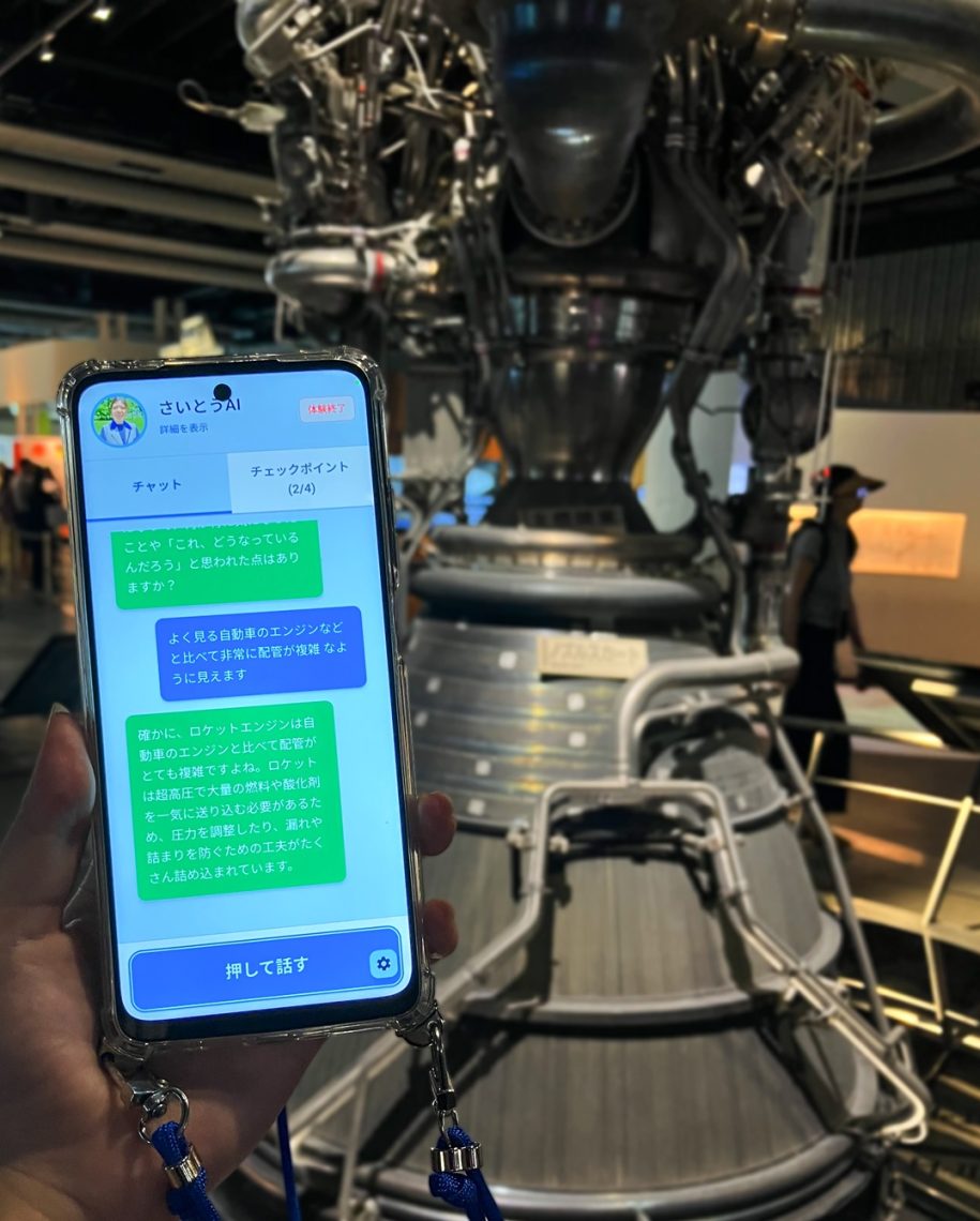 右:ロケット用エンジンをみて、配管について会話したときの様子。より詳しい情報を答えてくれる