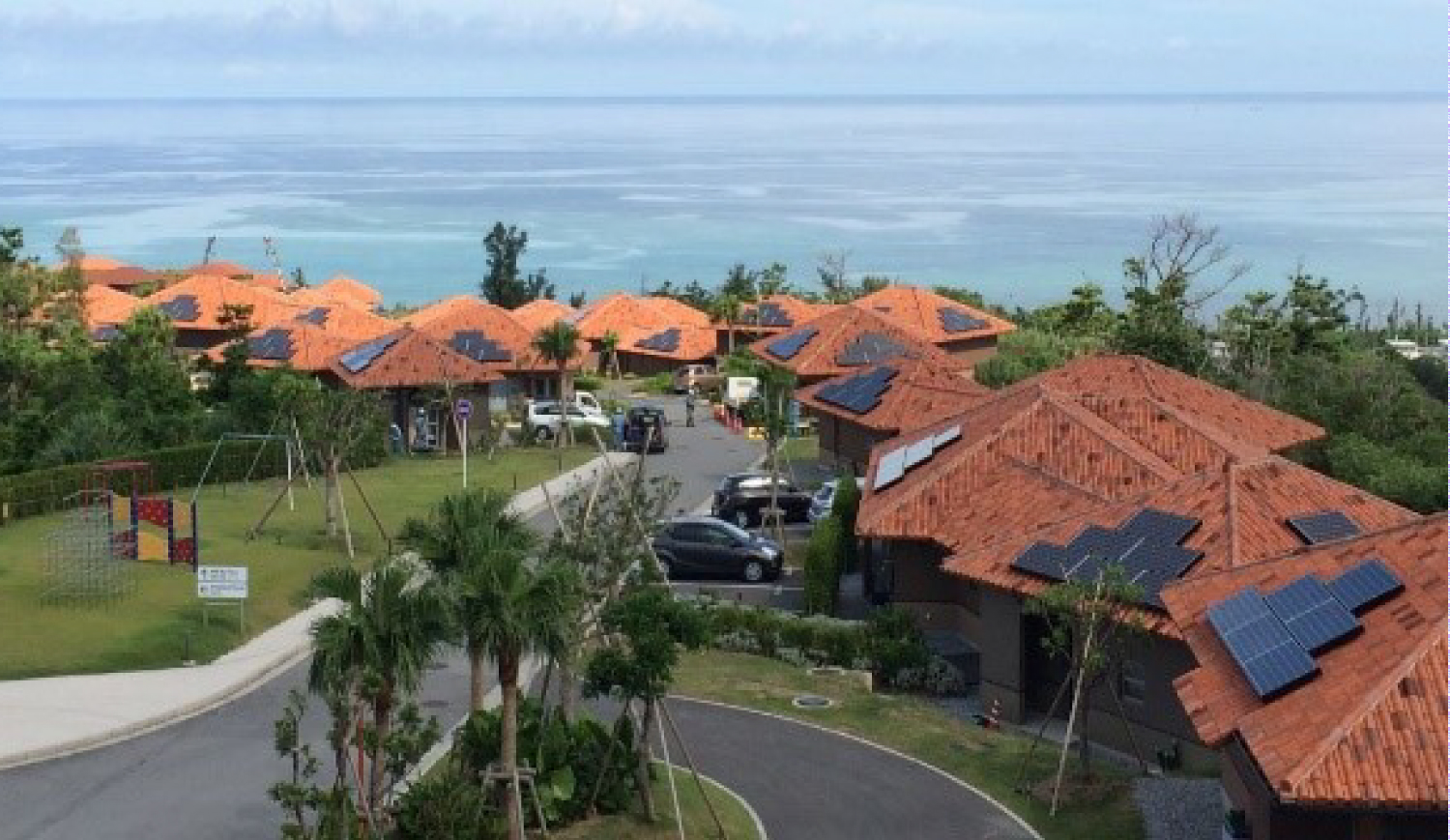 In this faculty housing project, our aim was to verify that a conventional power system and OES could work in concert. The capacity for each home was set at 3.5kW of photovoltaic (PV) cells, and a 4.8kWh battery, meaning OES would meet between 30% and 60% of the total power demand. However, by strengthening this capacity, it would be possible to achieve a greater share for renewable energy. (According to our simulations, PV10.0kW + battery 15.0kWh capacity would mean 93% of power coming from renewable energy) (This project was supported by the “Subtropical and Island Energy Infrastructure Technology Research Subsidy Program,” Okinawa Prefectural Government. Also, the test is being held in collaboration with Okinawa Institute of Science and Technology Graduate University (OIST), Okisokou、Ltd., and Sony Business Operations,Inc.)